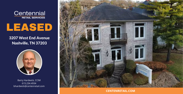 Congratulations to Barry Hardwick, CPA, CCIM on the successful lease of 3207 West End Avenue, located in Hendersonville, TN! Barry